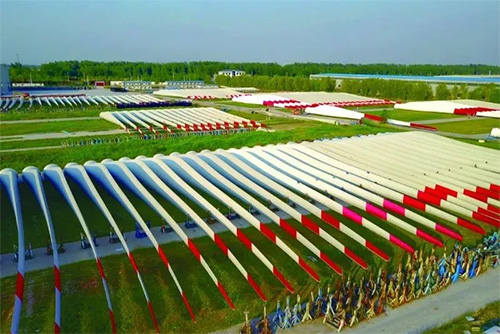 中材科技公司自2007年12月落户阜宁,至今投资建设了4家工厂,其中四工厂总投资11.5亿元,2020年1月开工建设,5月底土建竣工,6月进入试生产阶段,从开工到建成投产实际工期125天,推动该县成为全国规模最大、出口量最大的叶片生产基地,同时有效带动本地产业转型升级,已引进30多家配套企业,产值超10亿元。